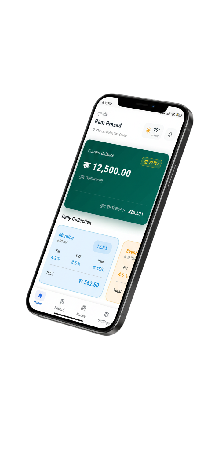 Digitizing the dairy industry in Nepal. A mobile app for farmers to get all their dairy sales and records at their fingertips.