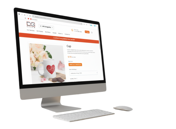 An innovative e-commerce app for a printing design studio, offering a vast range of customizable products—from Apparel (T-Shirts, Hoodies) and Business Materials (Banners, Visiting Cards) to Accessories (Mugs, Keychains) and Home & Living items (Canvas Prints, Frames).